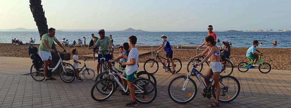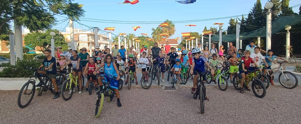 La asociación de vecinos organizó una marcha cicloturista junto al Mar Menor por el pueblo y por Mar de Cristal que reunió a un centenar de participantes de muy variadas edades.