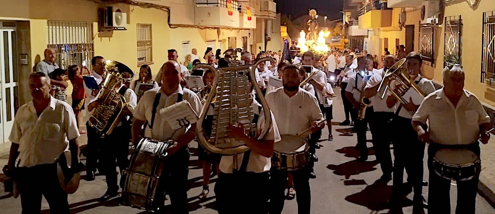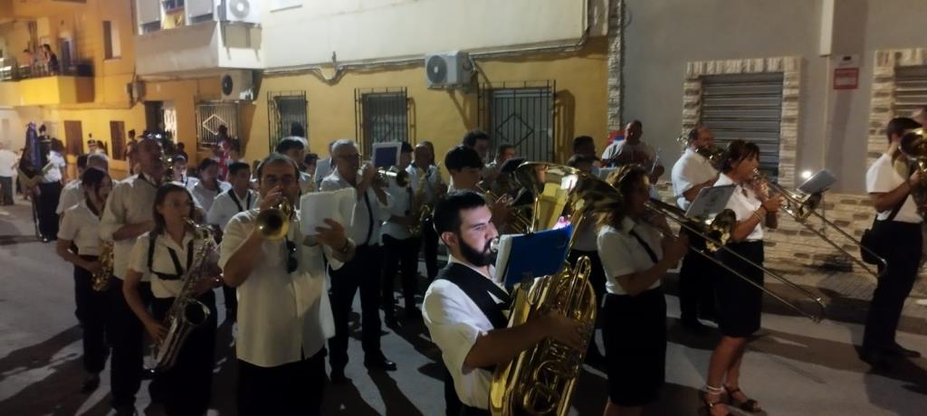 La procesión con Nuestra Señora de la Asunción y San Roque en la jornada final de las fiestas patronales alumbreñas también tiene un reportaje gráfico desde la perspectiva de la Agrupación Musical 'Cartagena 1990', que acompañó durante todo el recorrido a la comitiva.