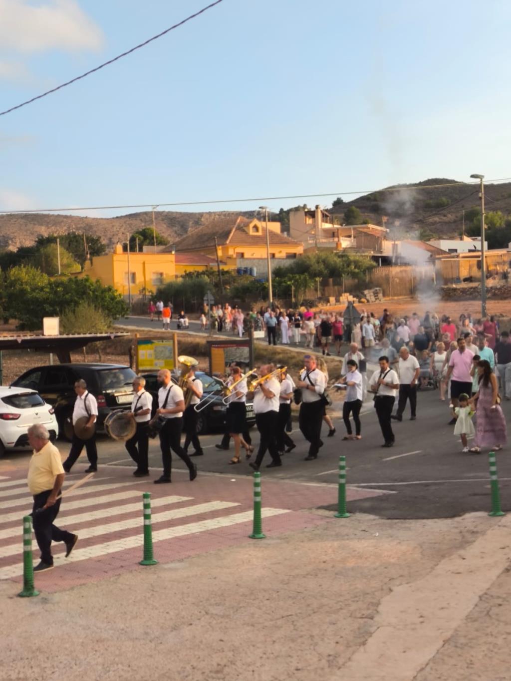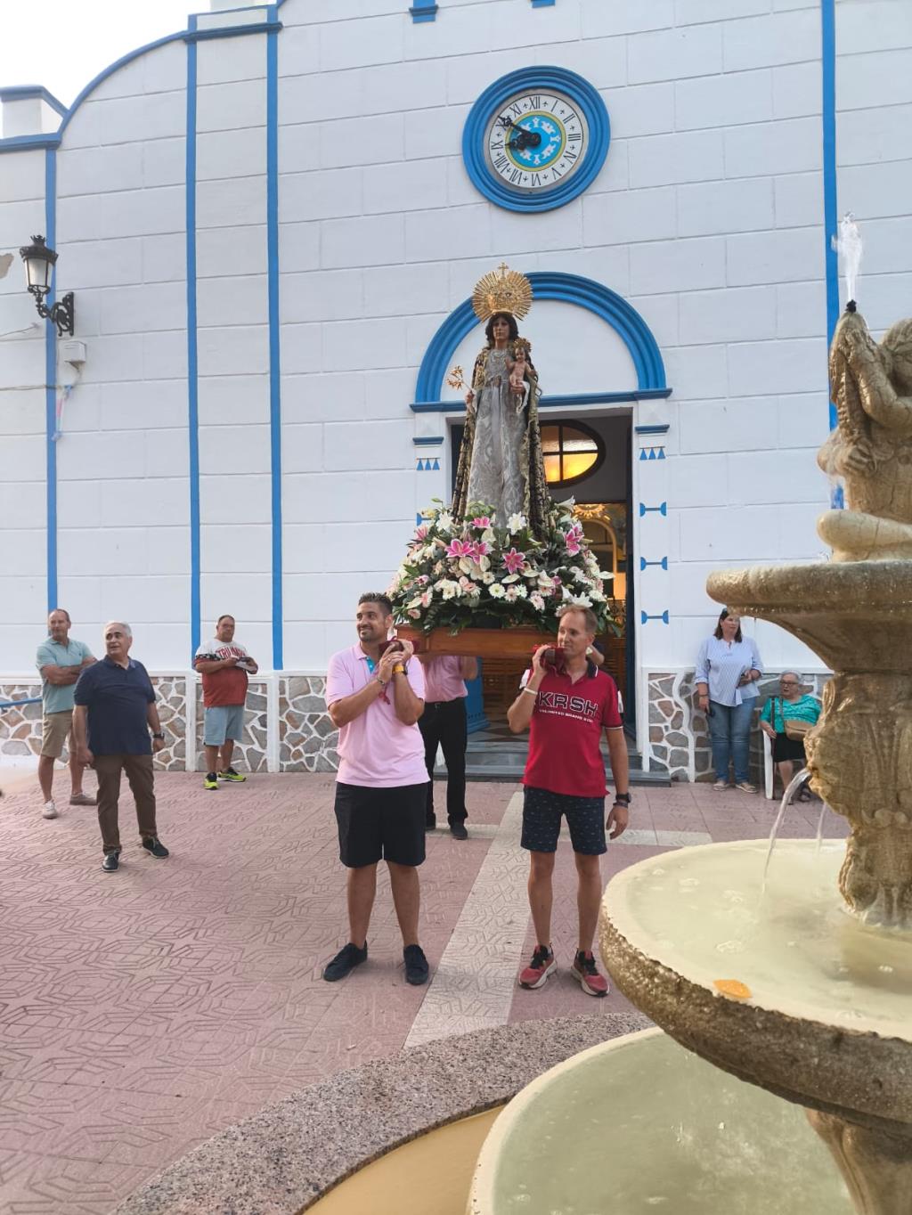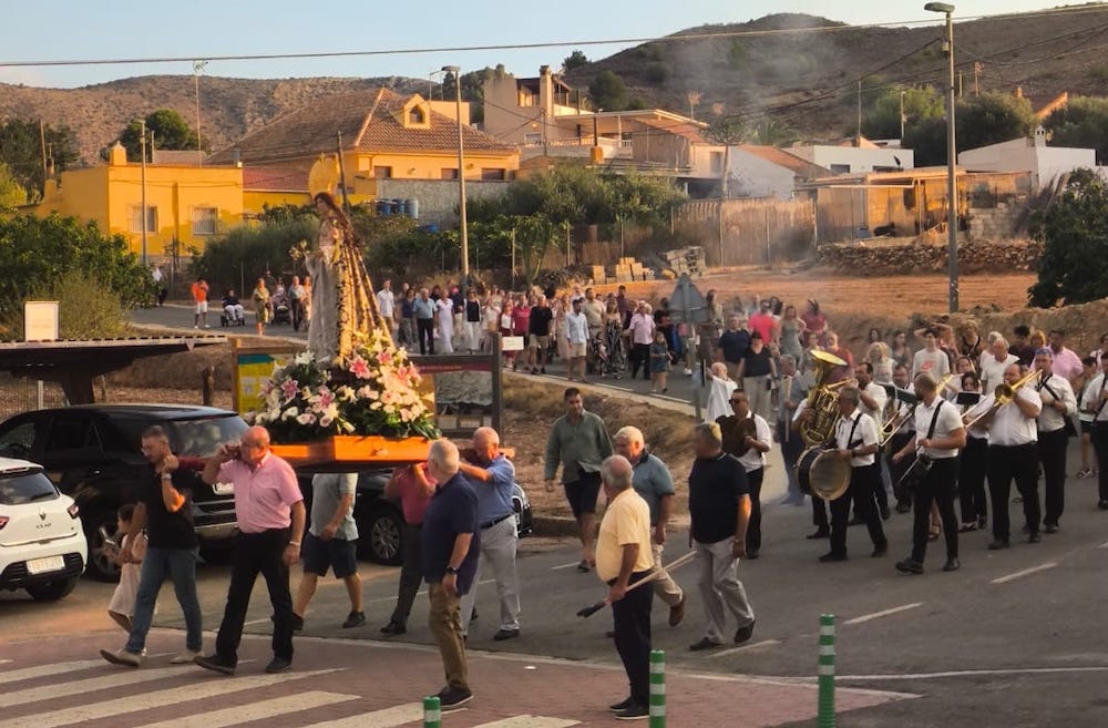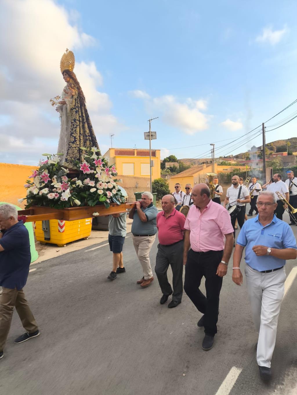 La 'madre' de los perineros protagonizó la jornada final de unas fiestas patronales que arrancaron el 20 de julio. La imagen presidió por la mañana una eucaristía en su honor que fue enriquecida por los sonidos de la 'Rondalla el Acueducto' y por la tarde, con el acompañamiento de la Agrupación Musical 'Cartagena 1990', recorrió diferencias calles y vías del pueblo, junto a sus devotos.
