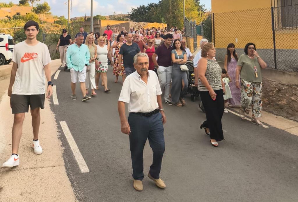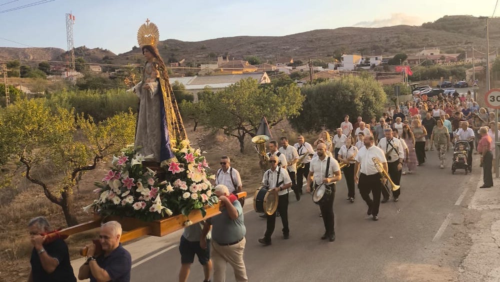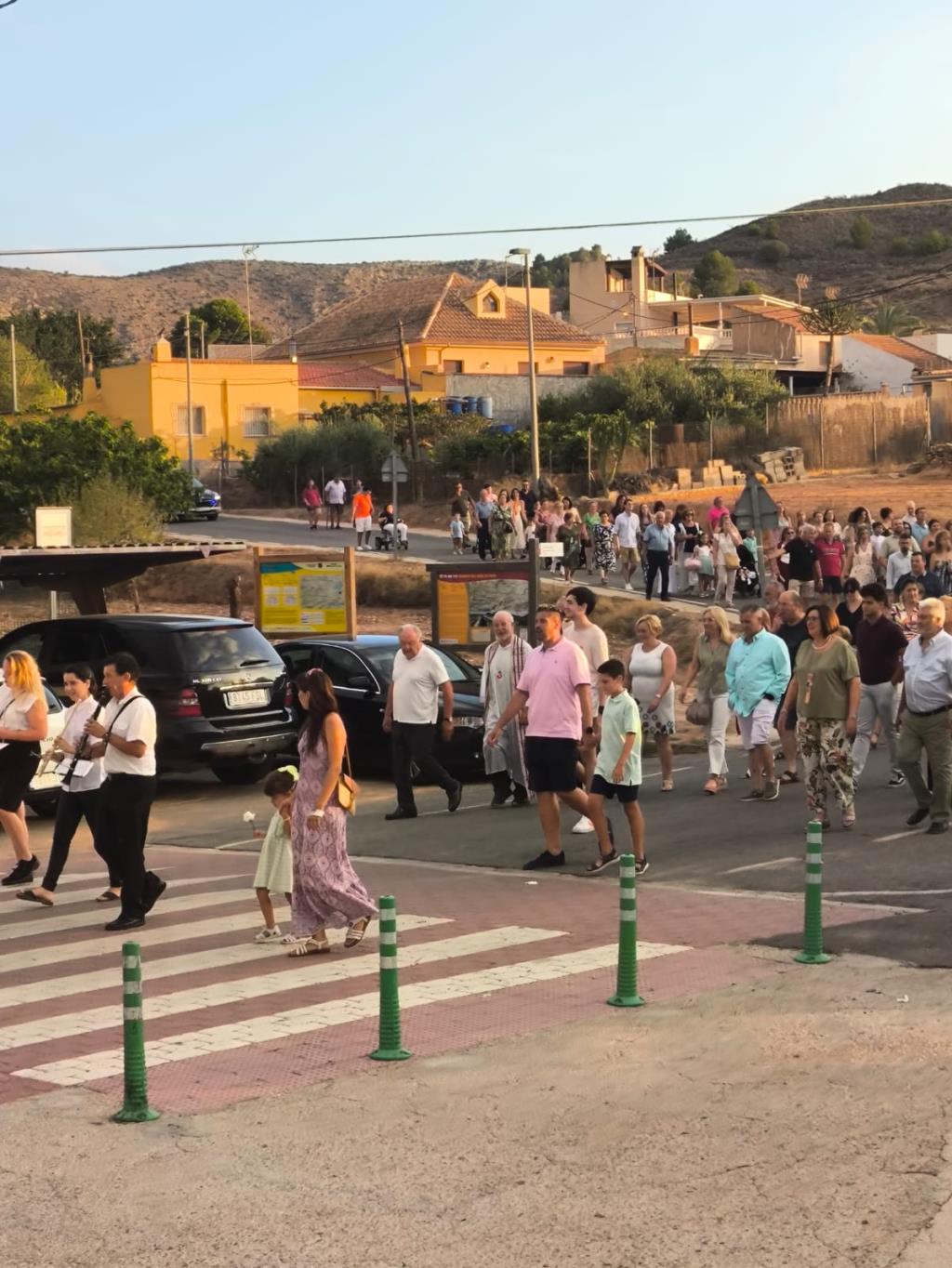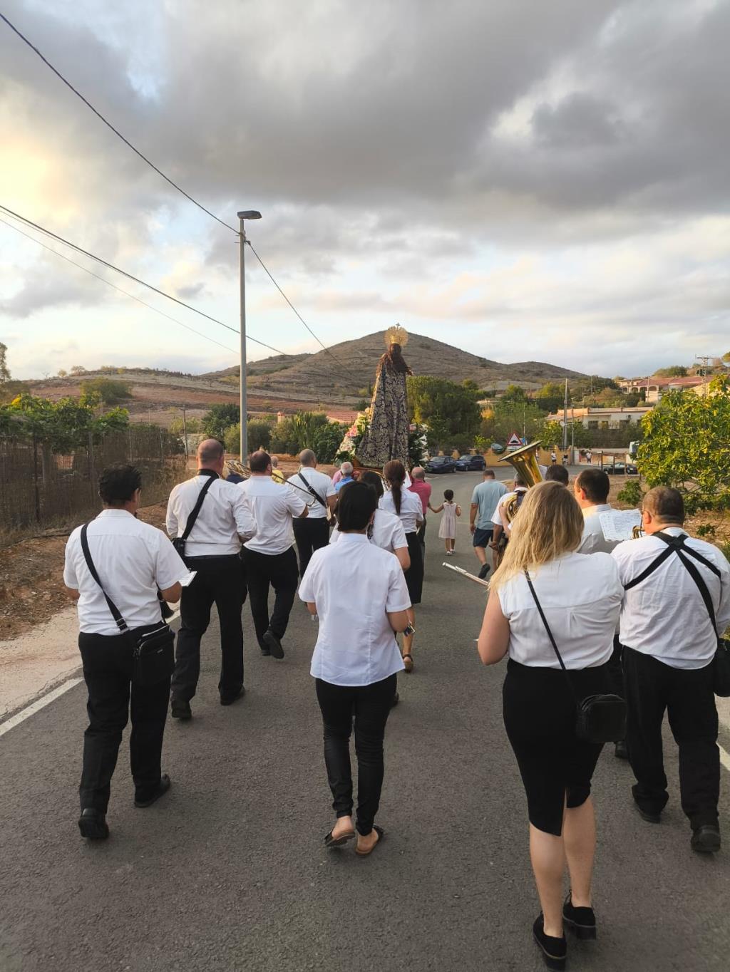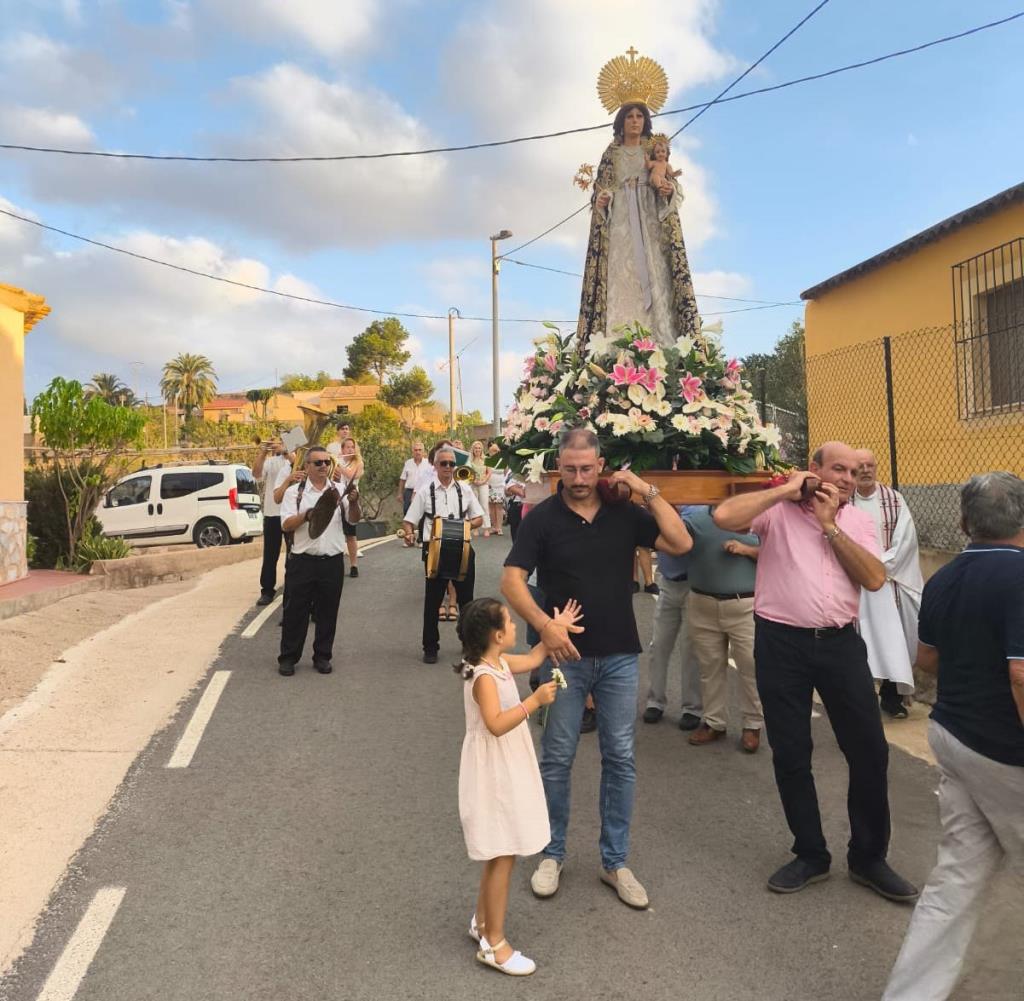 La 'madre' de los perineros protagonizó la jornada final de unas fiestas patronales que arrancaron el 20 de julio. La imagen presidió por la mañana una eucaristía en su honor que fue enriquecida por los sonidos de la 'Rondalla el Acueducto' y por la tarde, con el acompañamiento de la Agrupación Musical 'Cartagena 1990', recorrió diferencias calles y vías del pueblo, junto a sus devotos.