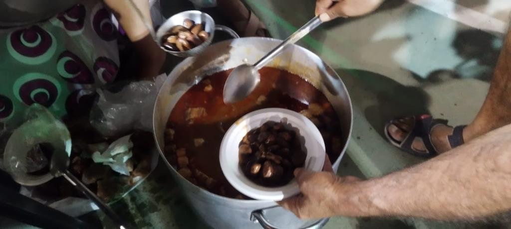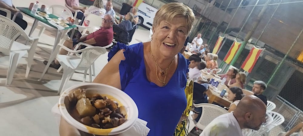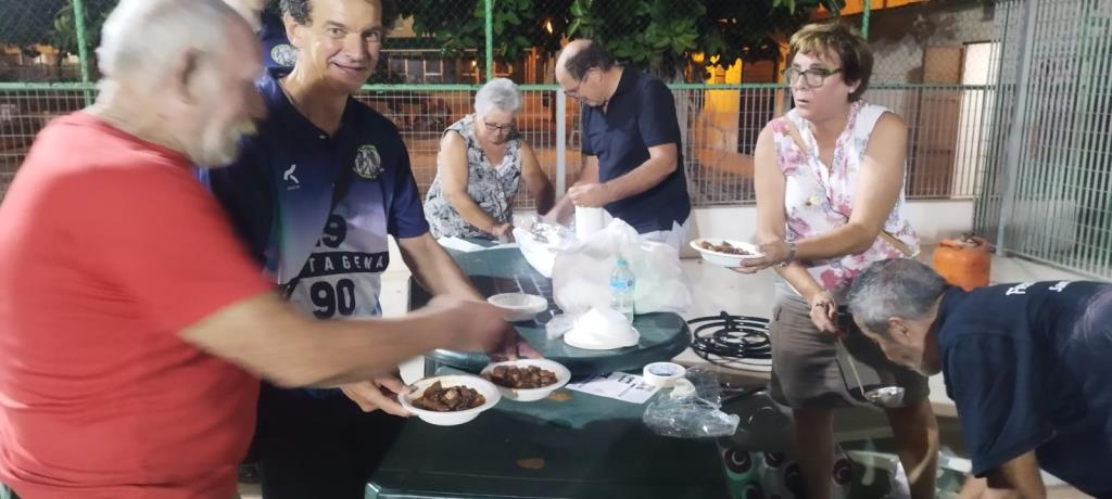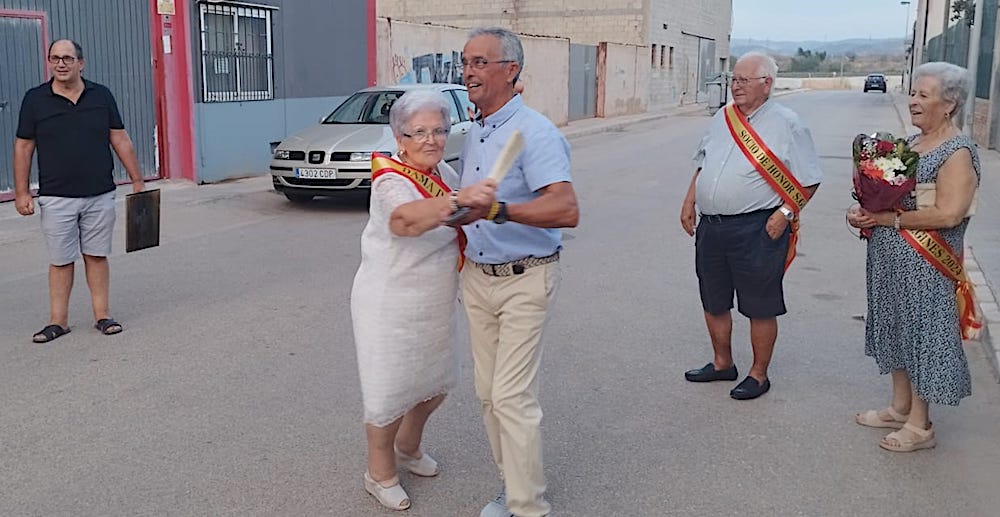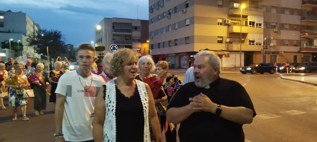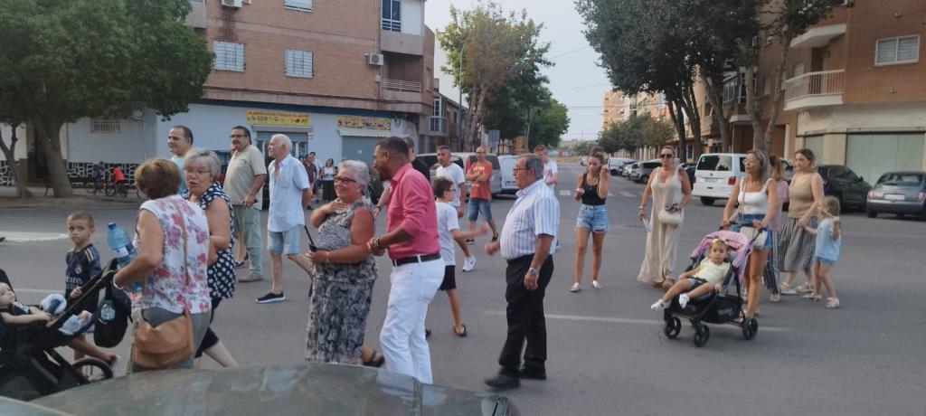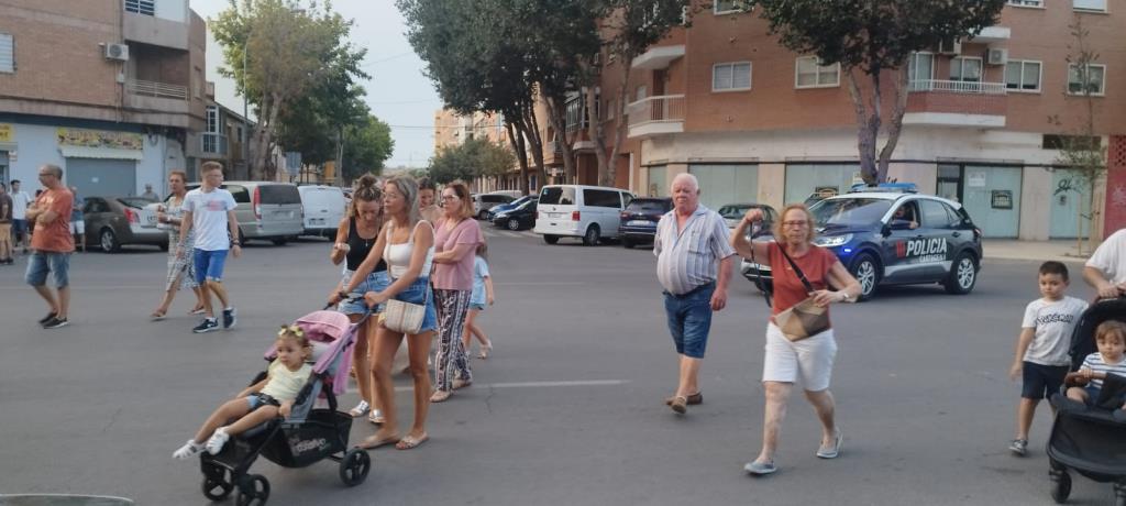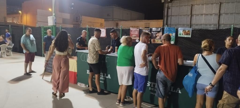Ana de Haro, presidenta de la asociación de vecinos de la vecina barriada del Ensanche-Almarjal, fue quien elaboró el tradicional plato que fue repartido en el recinto festero, donde la edil de Festejos, Paqui Martinez Sotomayor, ofreció el pregón de unas fiestas que se prolongarán hasta el domingo y que, de forma paralela, se complementan con las religiosas que tienen como epicentro la parroquia.