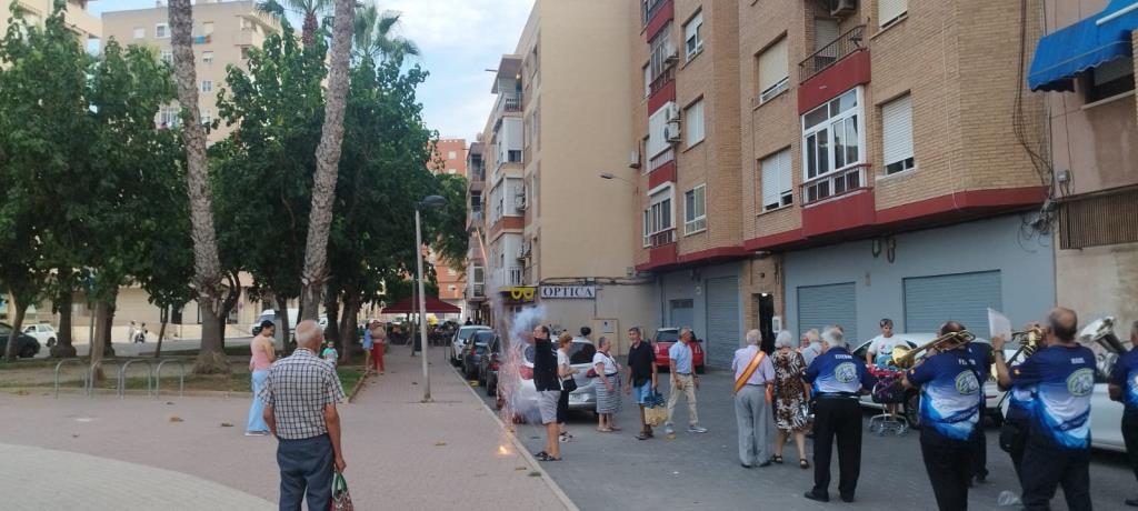 Las fiestas populares comenzaron con una animada recogida de las damas mayores y socios de honor de la asociación de vecinos a cargo de una comitiva que fue acudiendo a sus diferentes hogares con la marcha que imprimía la charanga de la Agrupación Musical 'Cartagena 1990', culminado la jornada una muy agradable velada en el parque García Pagán aderezada por el sabor de los michirones.