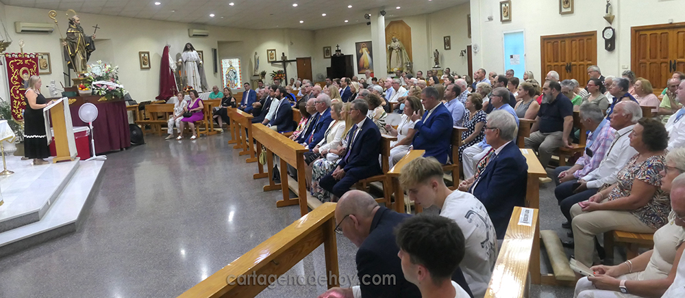Quien ha sido la primera mujer en la historia en ocupar el cargo de presidenta de la Junta de Cofradías de la Semana Santa de Cartagena, ofreció un ameno pregón ante los numerosos asistentes a la parroquia de la barriada de San Ginés.
