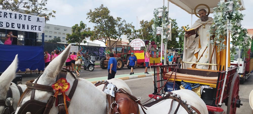 La Agrupación Musical 'Cartagena 1990' ofrece a los lectores un reportaje gráfico del inicio de la romería del patrono de Cartagena, desde la salida en la basílica de la Caridad hasta la llegada y estancia en la barriada de San Ginés, con degustación de chocolate con bollos, encargándose el reparto el escuadrón femenino del Ensanche-Almarjal.