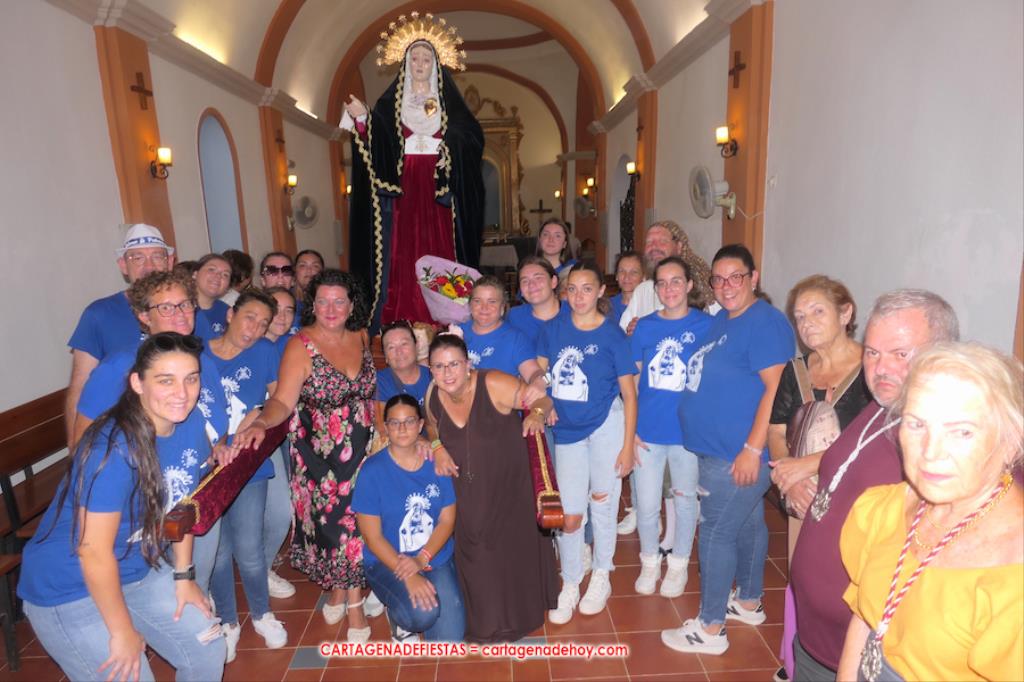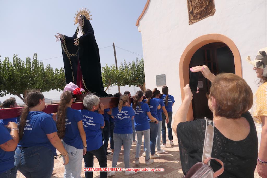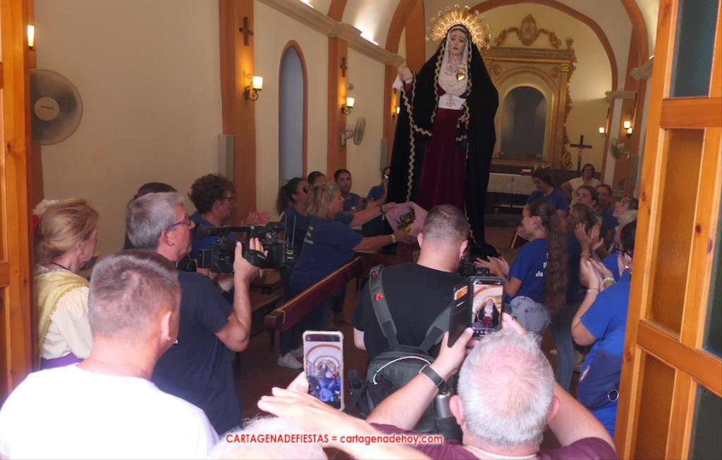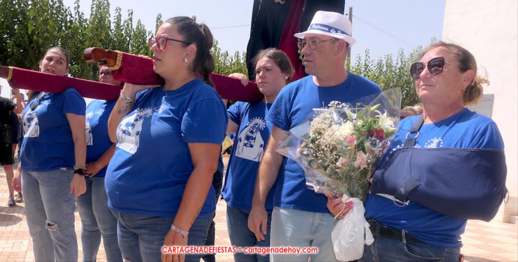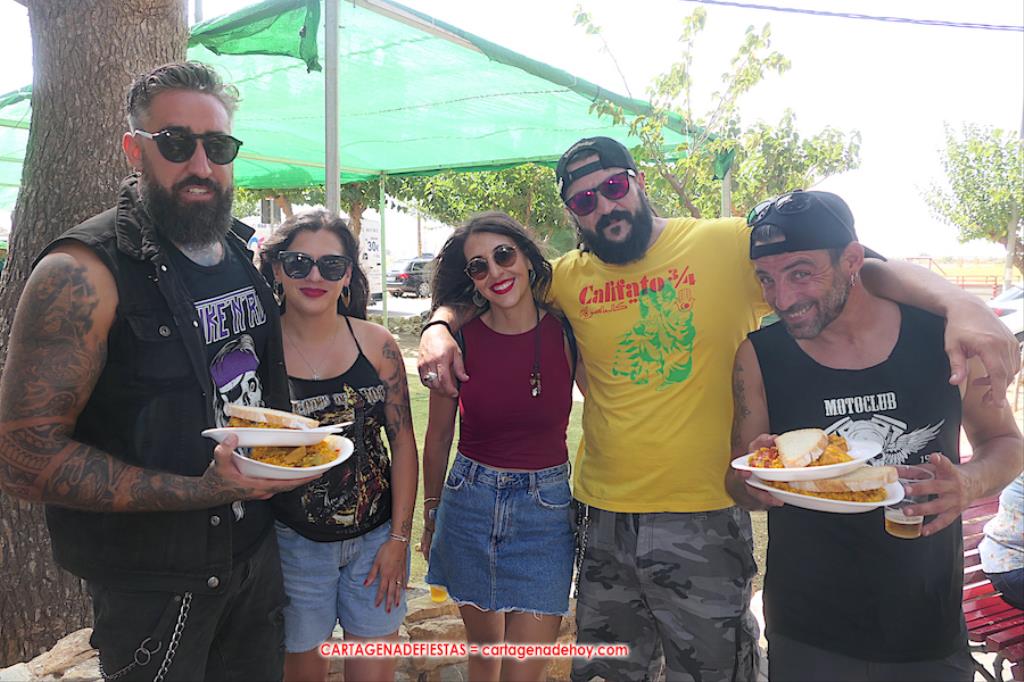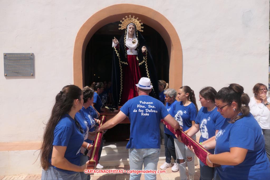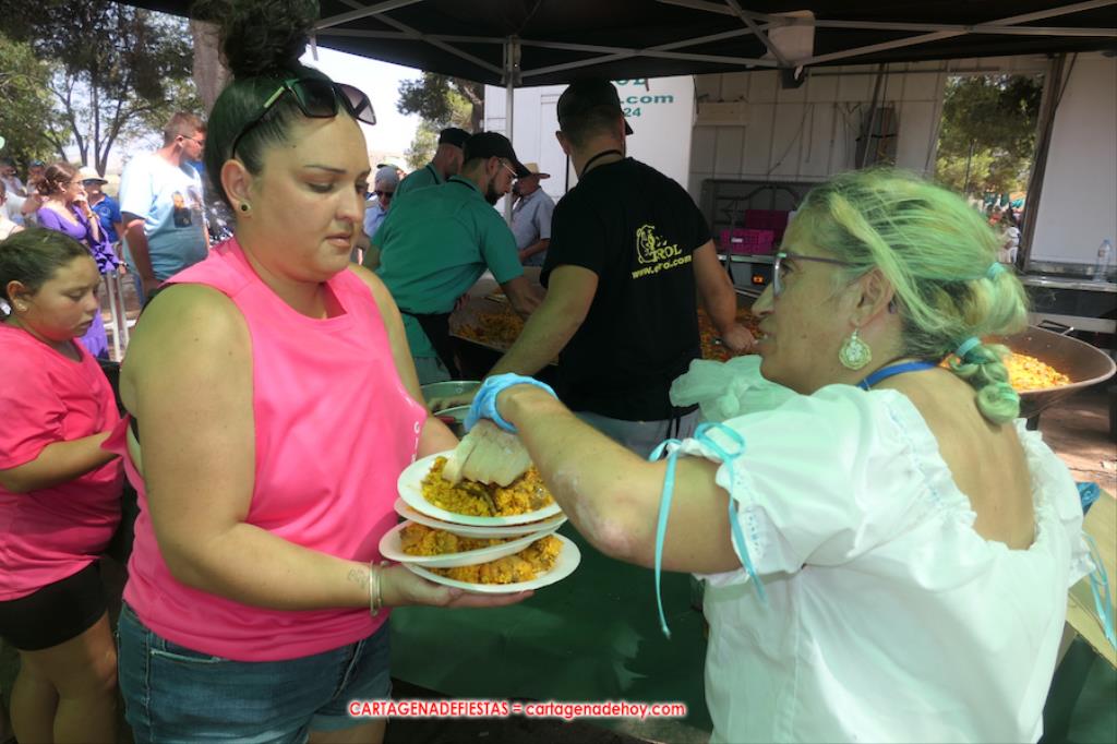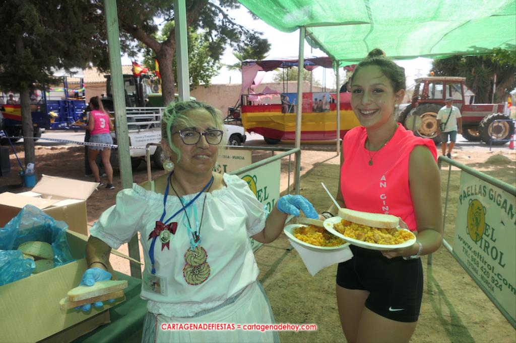 Karma21 ofrece escenas de la llegada de los romeros a la ermita unionense de Roche, donde el santo patrono cartagenero fue recibido por la Virgen de los Dolores y en cuya pinada tuvo lugar una gran convivencia en torno a un gigantesco arroz que culminó con cafe de puchero, desencadenándose durante ese alto varias 'batallas de agua'.