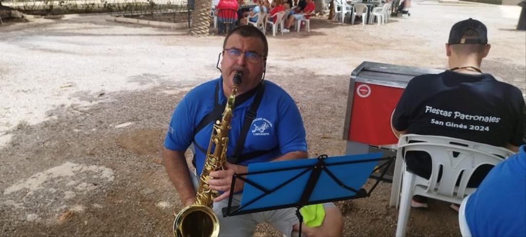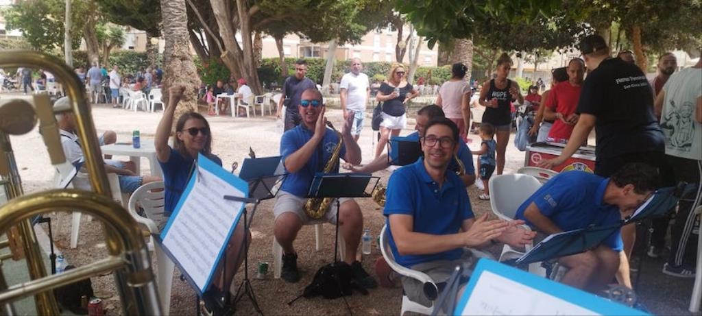 La mañana ha sido muy agradable a la sombra del arbolado del parque 'García Pagán', con una alta participación vecinal y la amenización de la banda de 'Cartagena 1990' con diferentes y populares temas musicales.