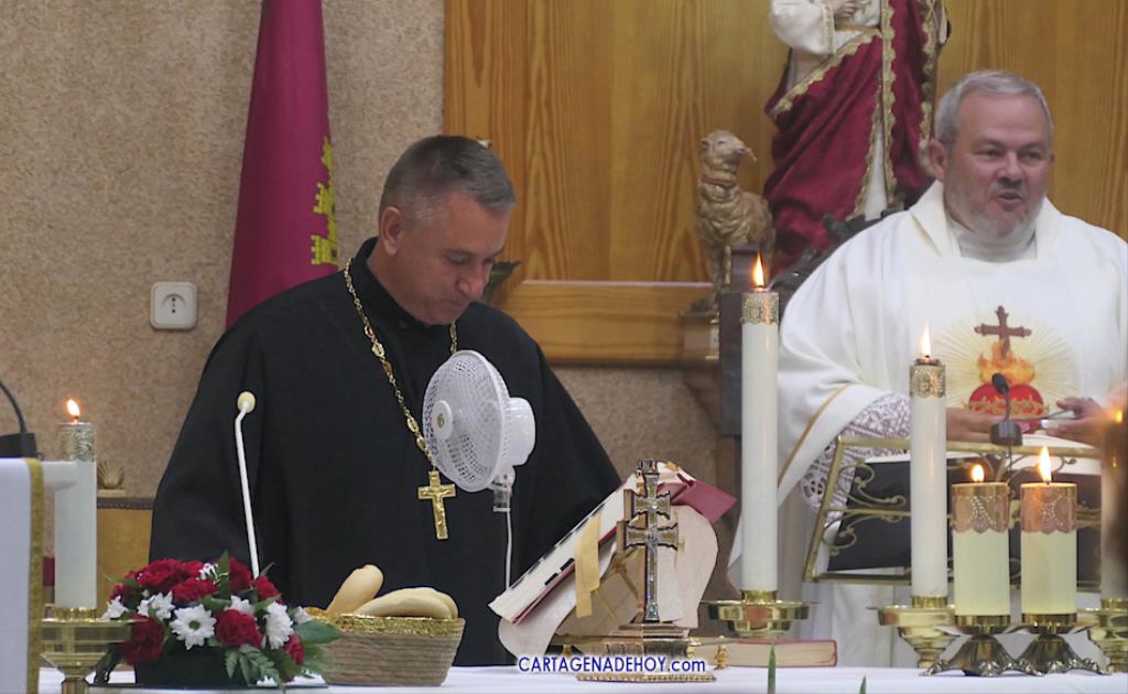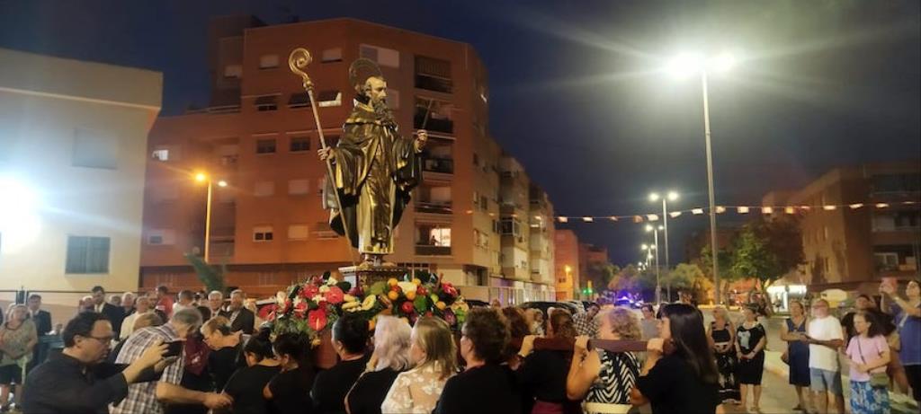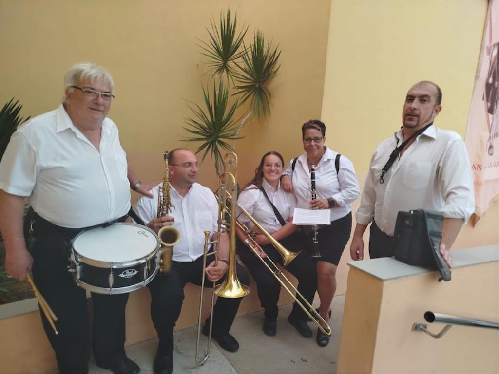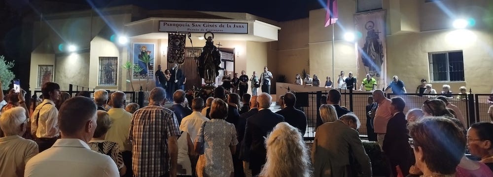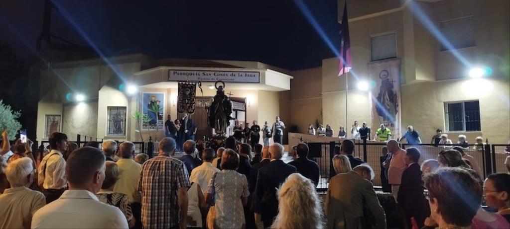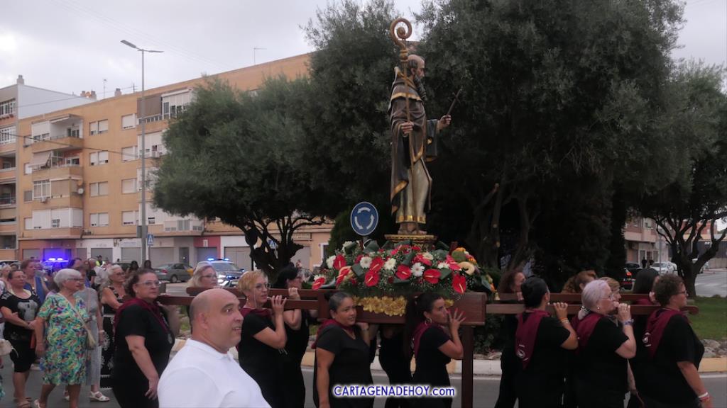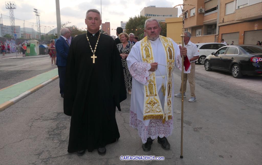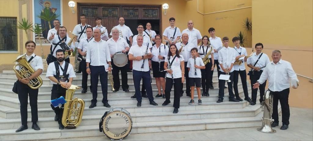 La otra novedad ha estado en la presencia de la Agrupación Musical 'Cartagena 1990', que ha recibido a la imagen haciendo sonar el himno de España y que después ha abierto la marcha por las calles de la barriada, por detrás del estandarte.