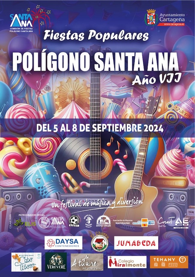 Para la realización de nuestras fiestas contamos y participan las asociaciones de mujeres CrearT Santa Ana, Escuela de Triatlón Santa Ana, Escuela de Futbol Santa Ana, Universidad Popular, Club Deportivo Santa Ana, Scouts Narses y la Asociación de Mayores Mayorazgo, además de la participación de los comercios del Polígono Santa Ana, comercios de Cartagena y el impulso del Ayuntamiento de Cartagena.