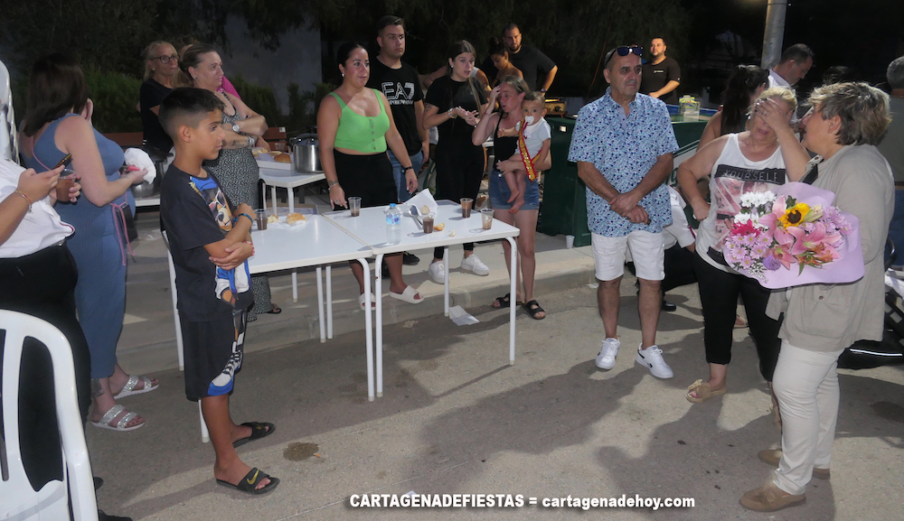 En un momento de este 'buen ratico', Pepe Márquez ‘El Cuco’, integrante del equipo vecinal, se dirigió a ella para darle las gracias por su asistencia, mientras que la presidenta le entregaba un ramo de flores. Belén Romero agradeció ese detalle y dijo a los presentes que ojalá desde el equipo de gobierno "pudiéramos hacer más, pero también es cierto que nos encontramos con unos procedimientos en la administración que son demasiados lentos, o al menos así nos lo parecen para los que somos impacientes", añadiendo que tiene en mente asuntos por solucionar con este enclave ubicado en la carretera Cartagena-La Unión, como "el aire acondicionado y la rambla (y sus olores). Se ha arreglado el tramo de carretera que habías pedido, pero ahora hay que velar entre todos porque el asfalto no vuelva a reventarse por le paso de tractores, lo que estoy seguro que haréis". La edil de Comercio concluyó afirmando que los vecinos de la Media Legua "sois una familia y debéis sentir nuestro respaldo".