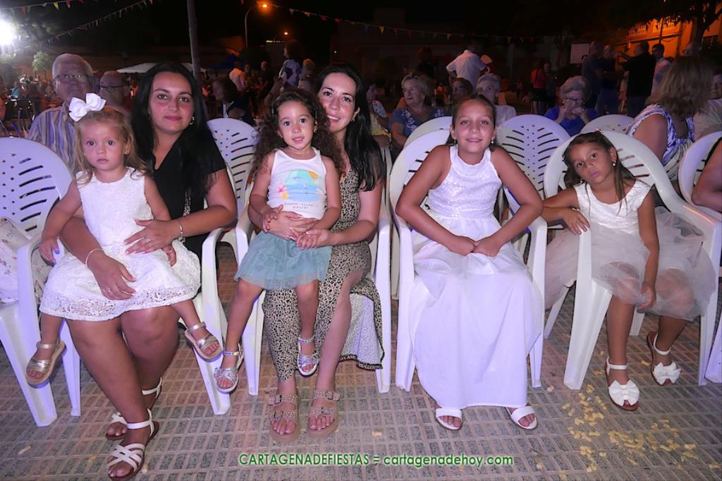 Después, subieron al escenario los concejales Nacho Jáudenes (PP), Diego Lorente (VOX), Isa Andreu y Pedro Contreras (PSOE) y Jesús Giménez y Juan José López (MC) para imponer bandas y coronas conjuntamente con los presidentes de la asociación de vecinos (Ángel Mario Ros), club de la tercera edad (Asensio Madrid) y la presidenta de la Junta Vecinal Municipal. De este último organismo también estuvieron como asistentes varios vocales, como Fulgencio Bernal, Antonio Valverde, Pencho Angosto, Ana Guzmán y Antonio Pardo.