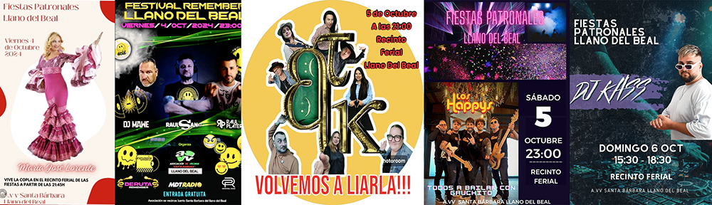 Organiza la Asociación de Vecinos Santa Bárbara de El Llano del Beal y el recinto festero será el habitual, siendo gratuita la entrada a todos los espectáculos.