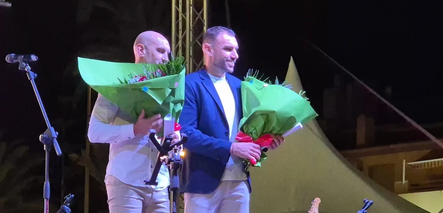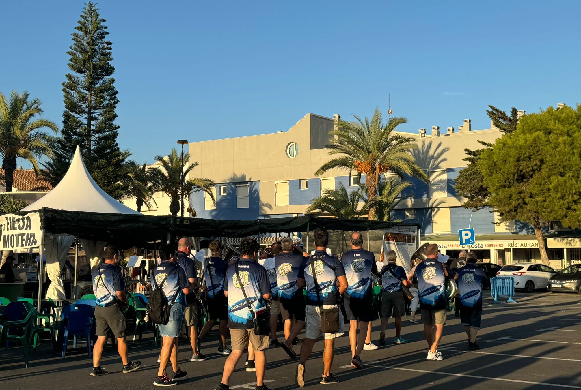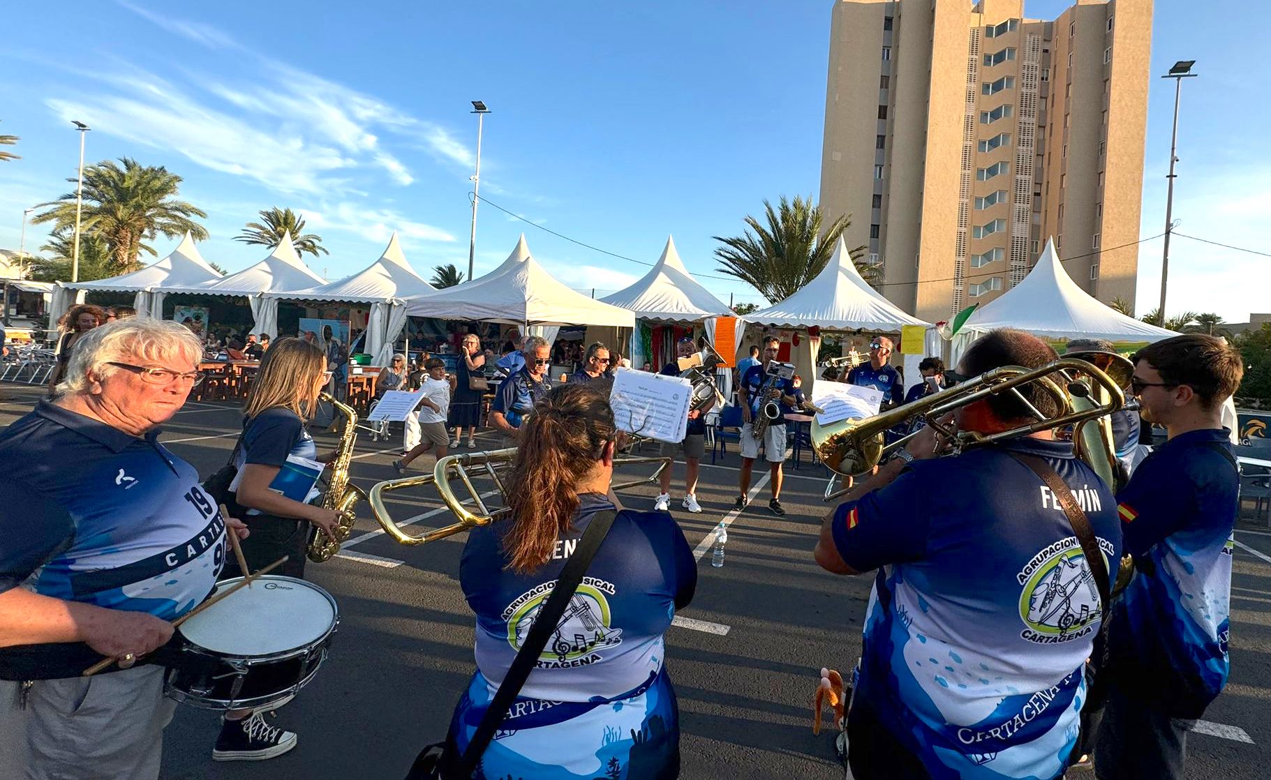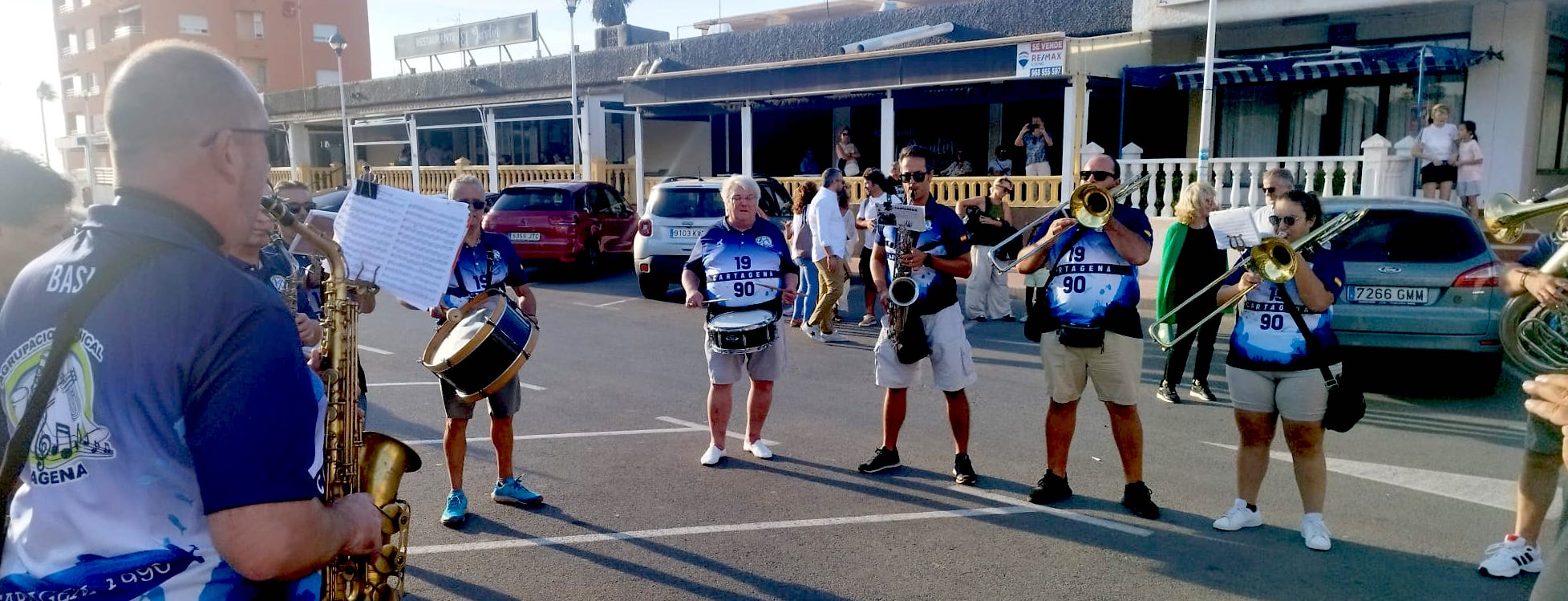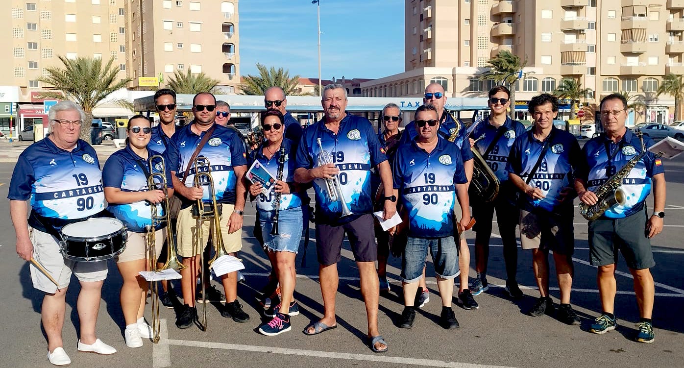 La charanga de la Agrupación Musical 'Cartagena 1990' anunció por la plaza Bohemia y su entorno el inicio de los cinco días festeros, siendo los hermanos mangueros Gonzalo y Luis Verdú quienes ofrecieron el pregón en un acto presentado por el televisivo Fran Sáez.