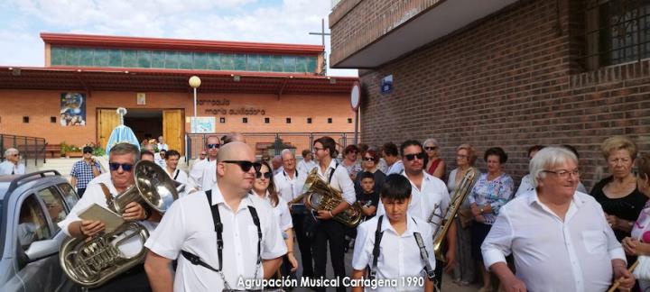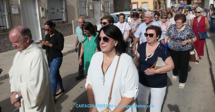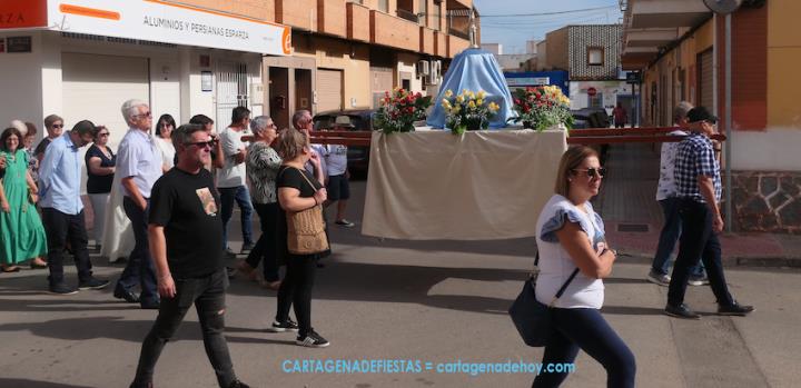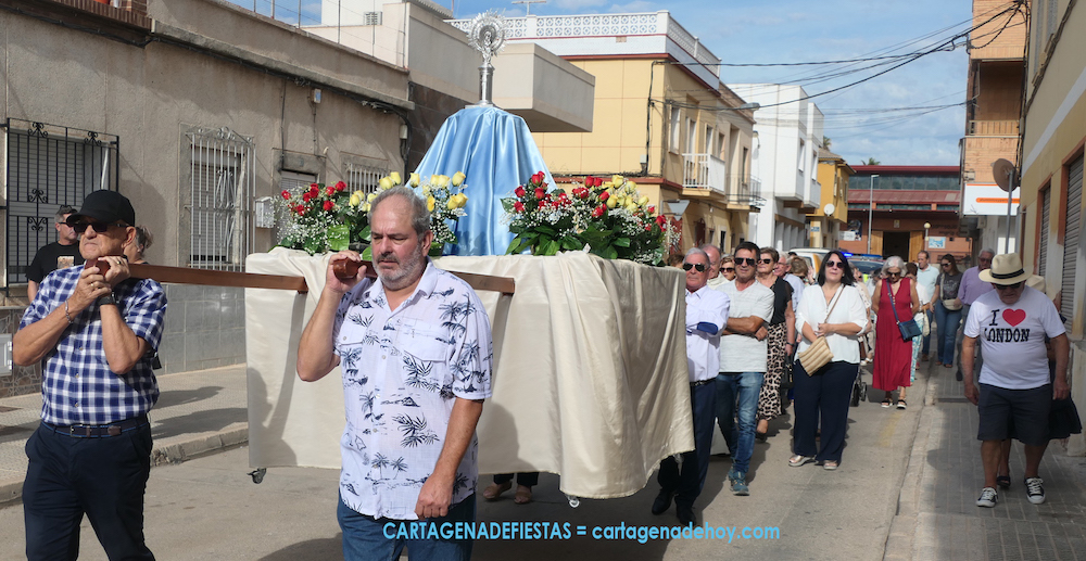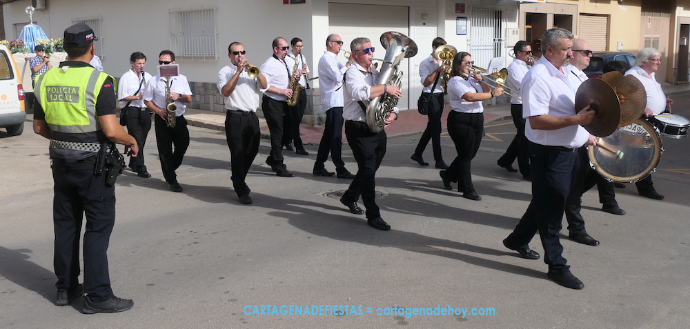 La procesión, con Julia Otón, como presidenta de la Junta Vecinal y representante municipal, salió ayer de la iglesia sobre las once de la mañana con la música de 'Resurrección' de la Agrupación Musical 'Cartagena 1990'.