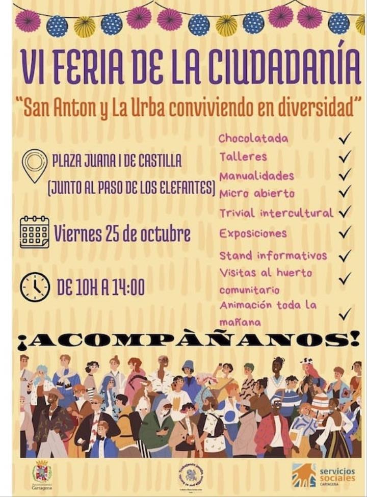 Otros colectivos locales han sido la Hermandad de Romeros, la comparsa carnavalera Villas de San Antón, la asociación de vecinos, IES Mediterráneo o la iniciativa 'Cultivando San Antón', entre otros. También había estand de la concejalía de Igualdad, Cepaim, Murcia Acoge, Cáritas, Cruz Roja Juventud, Aspemur, Cartagena libre de rumores, etc.