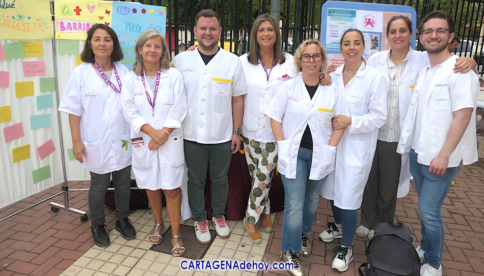 El personal sanitario ha regresado para mostrar su labor comunitaria a una sexta edición de la 'Feria de la ciudadanía de San Antonio Abad y Urbanización Mediterráneo' que ha convertido la plaza de Juana I de Castilla en una gran muestra de la actividad social de ambas barriadas.
