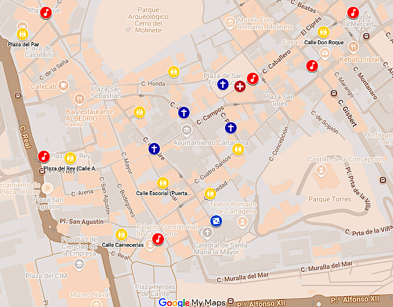El Ayuntamiento de Cartagena instalará en el casco histórico una treintena de aseos públicos de uso gratuito. Una gran parte de los baños públicos se ubicarán en la calle Balcones Azules, junto a una de las zonas más concurridas de esta festividad. También habrá aseos en plaza del Par próxima al Icue, plaza del Rey (calle Arena),las calles Escorial y Cuatro Santos, Calle Carneceria (Plaza José María Artés), Callejón Estereros (Calle Aire), próximo al Callejón de la Soledad y en la Calle Don Roque (Plaza de la Merced), y Calle Jara (Puerta lateral del Ayuntamiento). Todas las ubicaciones cuentan con aseos adaptados para personas con movilidad reducida.