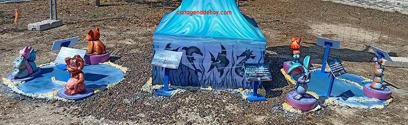 Este año toca recrear la embarcación que se salvó del gran diluvio, según recoge el Antiguo Testamento, y que en su parte inferior ofrece variedad de animalitos con carteles en los que figuran leyendas alusivas a ese capítulo bíblico.