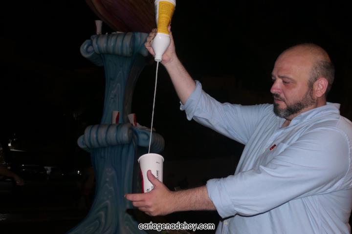 La noche comenzó en la plaza de la Marina Española con una cena compartida con vecinos mientras sonaban canciones con la temática de San Juan que, al parecer, es la que más artistas musicales han dedicado sus temas musicales. Después, pasadas las 23 horas, dos 'damas negras' ofrecieron conjuntos típicos de la noche e invitaron a los presentes a escribir sus malos deseos en papeles que después ardieron en la pira de fuego. También ofrecieron una actuación de habilidades con las llamas. El encargado de encender el 'Arca de Noé' fue en esta edición Alberto Requena, catedrático emérito de la Universidad de Murcia y presidente de la Academia de Gastronomía de la Región de Murcia.