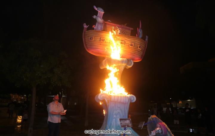 Esta vez la temática fue el 'Arca de Noé', lo que resultó especialmente cuidadoso hacerla arder, pues debido a su altura (las olas elevando la nave), existía el riego de que volcase con llamas. Por ello, Vicente y Manolo Torres (el secretario general del PSOE de Cartagena y vecino de Santa Lucía) la prepararon para que comenzase a encender de su mitad hacia arriba. Así fue y fue pasto de las llamas en apenas diez minutos de forma perfecta.