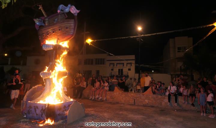 'La Isla' ofrece cada año la versión más artística de las hogueras de la noche de San Juan, pues, como si de una falla se tratase, ofrece una representación. Un año fue el Mar Menor, otra Carthagineses y Romanos, otras trajo películas 'Disney', otra el emblemático 'Pinacho'... Desde 2017 que fue la primera, cada año es punto de encuentro de muchos vecinos, cuantificándose anoche cerca de trescientos.