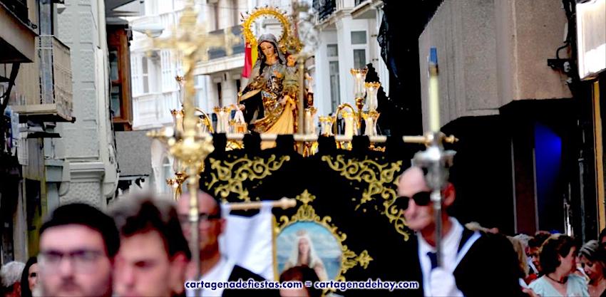 - Día 16. Festividad de nuestra Patrona. Eucaristía a las 9 y 11 de la mañana; Solemne Misa a las 19.30h. A las 20.30h Solemne Procesión de Ntra. Sra. del Carmen por las calles de Cartagena, recuperando el recorrido alrededor de nuestra Parroquia. A su paso por Capitanía General coincidirá con el arriado de bandera, a las 21.25 horas. Al finalizar, salve y castillo de fuegos artificiales.