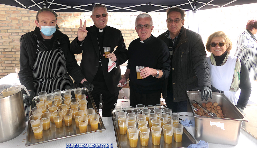 La parroquia que lleva el nombre de uno de los patronos de Cartagena comienza hoy el triduo en honor al santo, estando la primera jornada dedicada a enfermos y jóvenes. El domingo, tras la eucaristía de las familias, habrá degustación popular de caldo con los populares rellenos, iniciativa que se implantó el pasado año tomando el relevo al arroz de 2023. En la foto, una escena de la convivencia de 2024 con presencia del obispo y del párroco, entre otros.