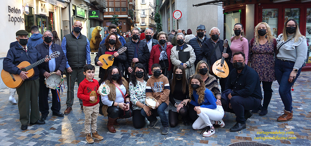 Después de cantar y bailar ante la 'mirada' de las figuras del Monumento al Procesionista, marcharon juntos hasta la plaza del Ayuntamiento, donde ofrecieron más bailes, aguilandos y villancicos al público presente.