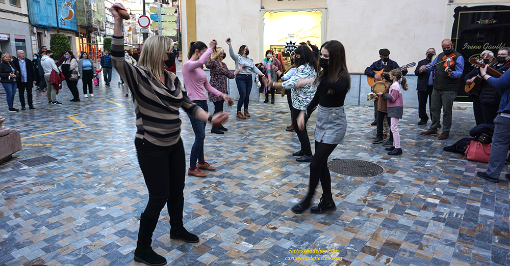 El Grupo Folklórico de La Palma partió de la plaza del Rey, la cuadrilla de Molinos Marfagones lo hizo desde la glorieta de San Francisco, la de Isla Plana se puso en marcha en la calle Campos, Tallante arrancó desde la Cuesta de la Baronesa y La Aljorra se puso a caminar desde la plaza Juan XXIII, confluyendo todos en la plaza de San Sebastián junto a la cuadrilla y escuela bolera de Fuente Álamo, invitada para este evento, que llegó desde la calle del Carmen.