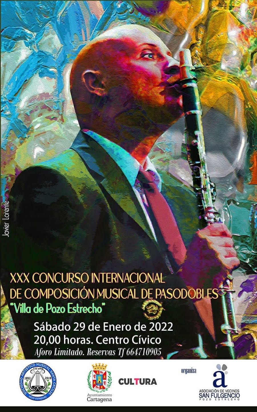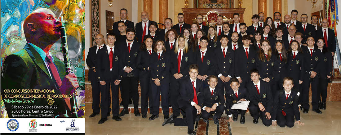 La banda de música de Santa Cecilia interpretará el próximo 29 de enero a las 20 horas las obras que se han presentado al XXX Concurso de composición de Pasodobles Villa de Pozo Estrecho. El evento será en el centro cívico de Pozo Estrecho.
