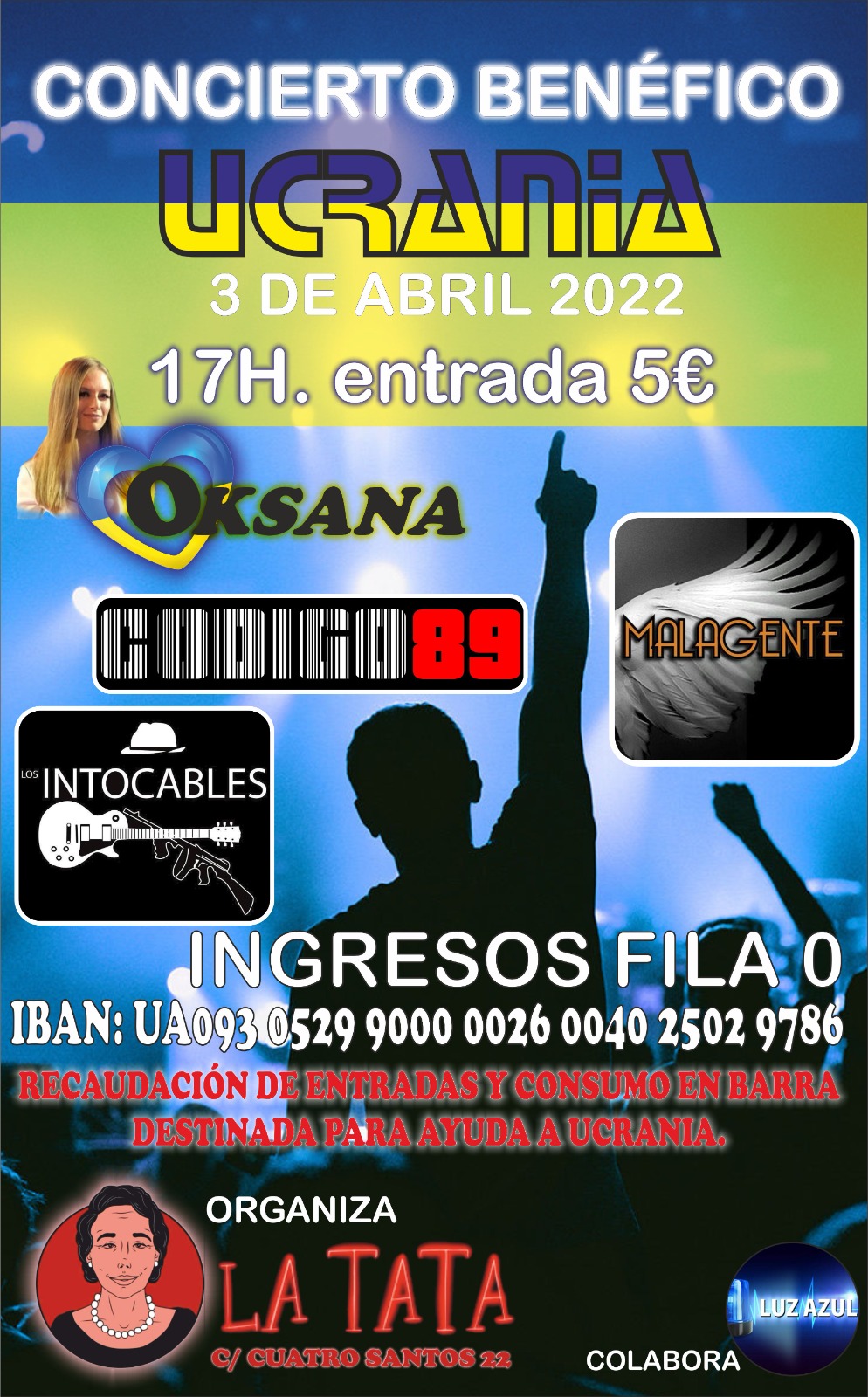 Leer más...La Tata ha organizado un concierto benéfico para ayudar a Ucrania el próximo 3 de abril. Actuarán grupos como Oksana, Código 89 y Los Intocables. Será a las 17 horas.