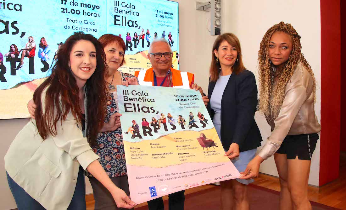 Noa Caleo, Dora Helena e Irmante (música), Mar Vidal (interpretación), Carmen Escudero (poesía), ‘La Niña de la Magdalena’ (trovo) y la Escuela de Ana Zapata (danza) protagonizan el evento, presentado por la cantante y periodista cartagenera Lydia Martín. La artista plástica Jennifer López expondrá en el hall del Teatro. Tendrá lugar el 17 de mayo en el Teatro Circo de Cartagena.