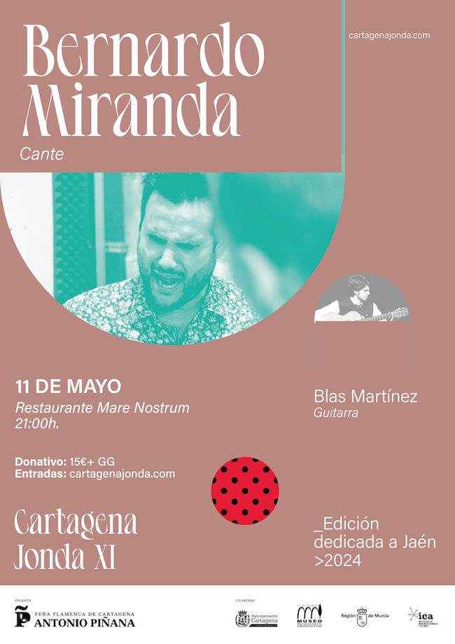 Bernardo Miranda (Fernán Núñez, Córdoba, 1988). En Córdoba es habitual de una de las peñas de más solera de la campiña, El Mirabras, en Fernán Núñez. Y fue precisamente en el espacio de la peña, que siempre fue el soporte social de aprendizaje en el flamenco tradicional, a través de la escucha pausada de maestros o aficionados, donde Miranda adquirió el mensaje y la forma para dar peso a su propio cante.
