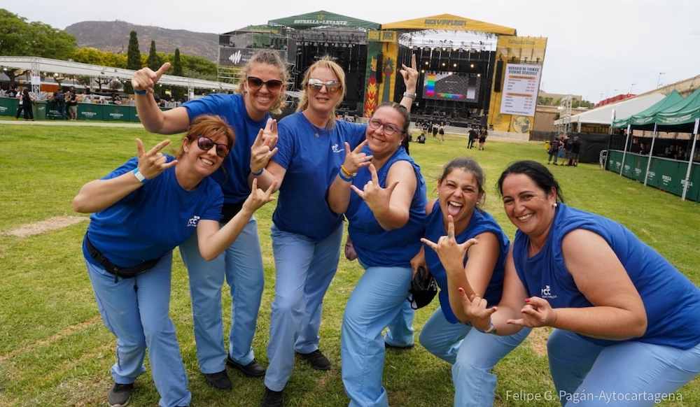 Nueva remesas de fotografías de la primera jornada del tercer 'Rock Imperium Festival' que ha comenzado hoy en la Cuesta del Batel, en esta ocasión con escenas captadas por la cámara de Felipe G. Pagán. En la imagen adjunta se observa a empleadas de FCC Medio Ambiente, cuya labor ha sido muy elogiada por los asisentes en las dos primeras ediciones.