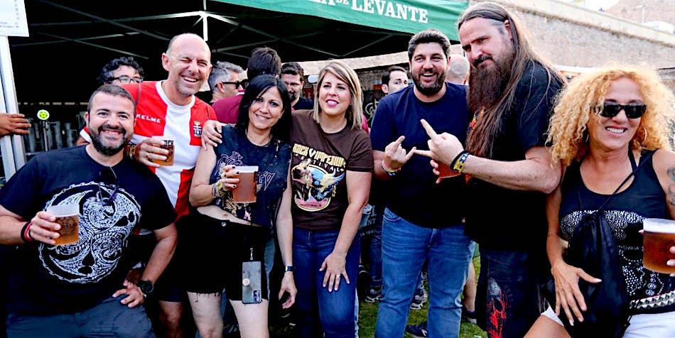 El primer día de 'Rock Imperium Festival' atrajo también a la alcaldesa, Noelia Arroyo, y al presidente regional, Fernando López Miras, a quien se observa representando con su mano el típico gesto de los rockeros y del 'heavy metal'.
