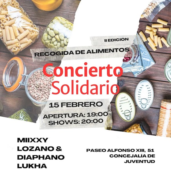 La segunda edición del concierto solidaria con recogida de productos para el Banco de Alimentos de la Región de Murcia de Cartagena se ha fijado este año para la noche del 15 de febrero con las actuaciones de Miixxy, Lozano&Diaphano y Lukha.