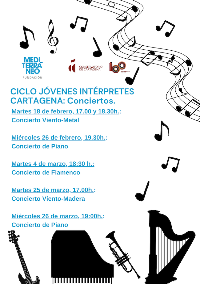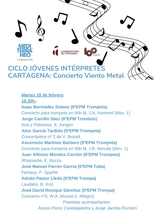El ciclo organizado por el Conservatorio de Música de Cartagena en la sede de la calle Mayor de la Fundación Mediterráneo se inicia hoy con viento-metal y tendrá las siguientes citas el miércoles 26 y os días 4, 25 y 26 de marzo. Entrada gratuita.
