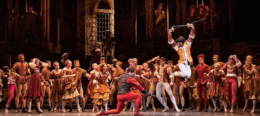 Los amantes desventurados de Shakespeare sucumben a la pasión y la tragedia. Los Capuleto y los Montesco son enemigos jurados. Pero Romeo Montesco y Julieta Capuleto se enamoran a primera vista en el baile de los Capuleto, en el que Romeo se ha colado. Los jóvenes se profesan devoción mutua en el balcón de Julieta y se casan en secreto. Las dificultades aumentan para la pareja cuando Romeo es expulsado de Verona tras vengar la muerte de su amigo Mercucio, asesinado por Teobaldo, el primo de Julieta. Mientras tanto, los padres de Julieta quieren obligarla a casarse con otro pretendiente. Si quieren estar juntos, Romeo y Julieta deberán sacrificarlo todo.