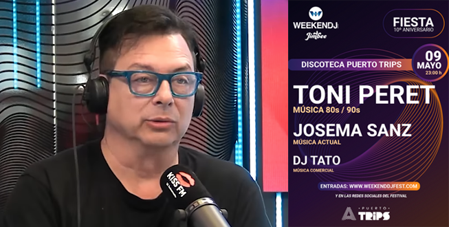 La organización del festival de 'pinchadiscos' que tendrá lugar el 21 de junio organiza una fiesta previa para el 9 de mayo en Discoteca Puerto Trips para celebrar su décimo aniversario. Estarán Toni Peret (foto adjunta), Josema Sanz y DJ Tato.