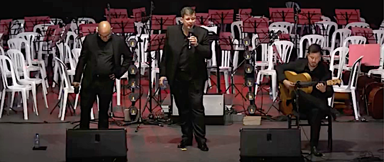 Los repentizadores Paco Paredes y Pedro López Salmerón, con Pablo Barrionuevo a la guitarra, participaron en la gala del centenario del Conservatorio de Música de Cartagena, que se desarrolló en el auditorio del Parque de Torres. Ofrecemos el vídeo del duelo trovero.