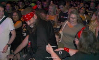 La presencia del cuarteto sobre el escenario contó durante unos minutos con la presencia del cura obrero Antonio Bermejo, quien ofreció su tradicional 'Porronpompero'. También reseñar que el público pidió bises a 'Sharabia', banda que adornó su actuación con un lanzamiento de fuegos artificiales desde una zona próximo.