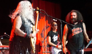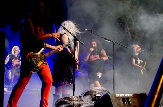 Cuando quedaban cinco minutos para la medianoche, y tras acabar 'Sharabia' su actuación (pinchar aquí), subieron al escenario, del que se bajaron una hora y veinte minutos más tarde después de 'darlo todo', como se suele decir (y fue cierto), para que los asistentes disfrutasen en la parada de la gira 'Los más grandes' que los ahora llamados 'Semos Los Mojinos Escozíos' llevaron a cabo en Vista Alegre, donde ofrecieron una mayoría de temas conocidos (también algunos novedosos) ante una multitud de todas las edades, pues pudimos ver personas de muy avanzada edad con camisetas negras temáticas para la ocasión como chavales que se sabían las letras, junto a otros que empezaban a ser 'captados' para ser su público de los próximos años.