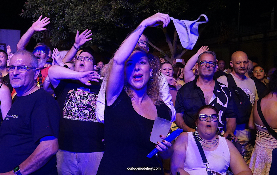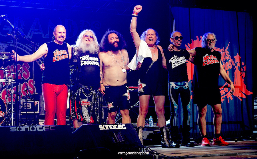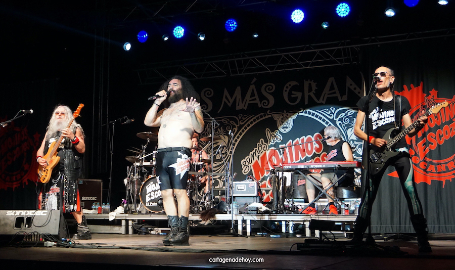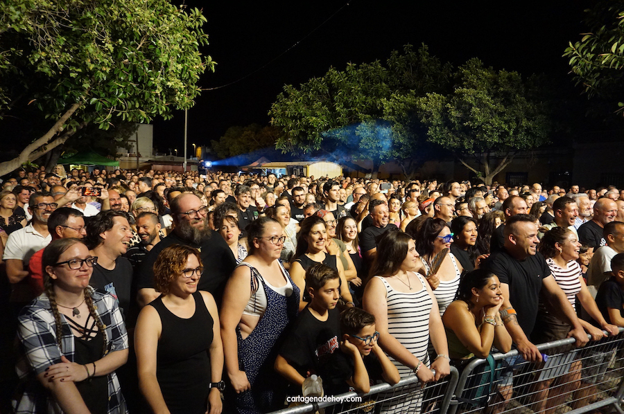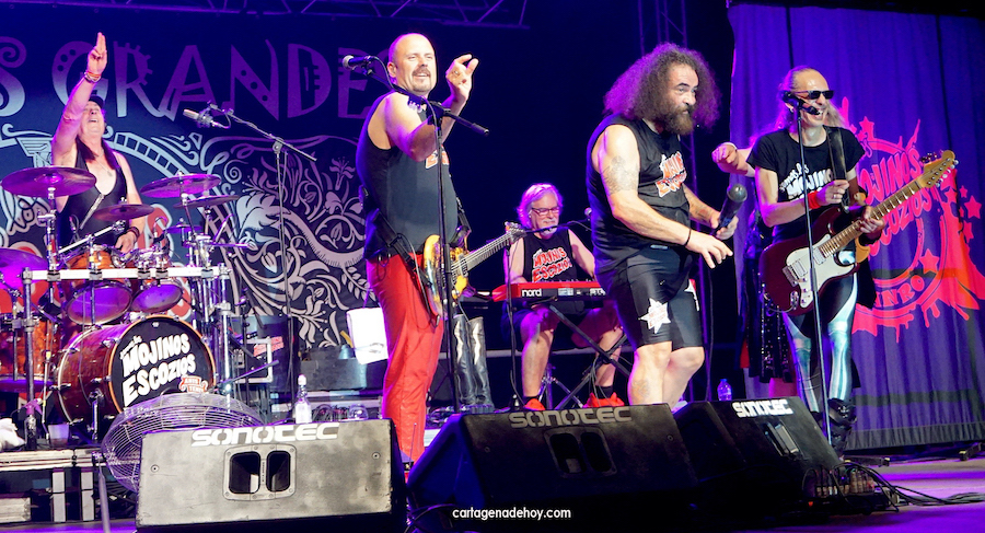 Fue una gozada volver a ver por estas tierras del sureste a 'Mojinos Escozíos', una banda que, como demostró en 2020 en La Unión y en 2023 en Los Dolores, tiene una legión de seguidores 'enganchados' con una fórmula tan sencilla como meritoria, que no es otra que ofrecer un rock rítmico con letras pegadizas muy simpáticas, elevando el humor la actuación de su líder, Miguel Ángel Rodríguez 'El Sevilla', el showman y gran referente de la banda que integran 'Zippy', 'El Puto', 'Vidalito' y 'El Kanishe', quienes dan mucho juego a esas puestas en escenas. Además, entre sonrisas y risas, se percibe que tienen una gran calidad musical, tanto por que son muy buenos músicos y disponen de estupendos equipos, habiendo apostado por una singularidad que los hace muy populares en los 31 años que llevan de conciertos.