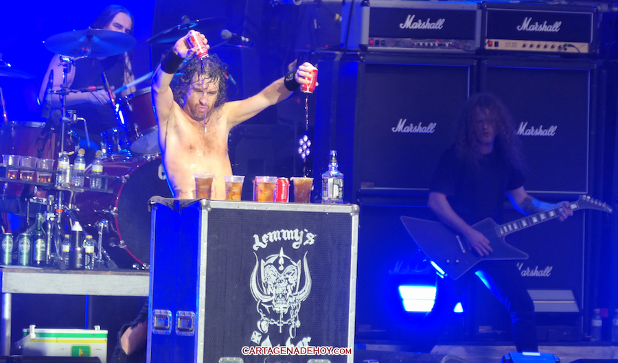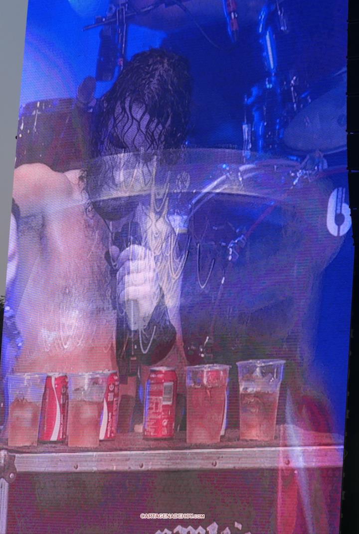 Ayer, en la pradera del Batel de Cartagena, se entregó a tope, como bien reflejaba el sudor que brotaba por sus poros y enseguida consiguió una complicidad muy grande con el público, entre el que avanzó sobre los hombros de otra persona. También se le vio preparar güisquis con hielo sobre un altavoz, los cuales repartió después entre sus compañeros. Su generosidad líquida se amplió después lanzando vasos de plástico con cerveza muy bien dirigidos a los espectadores. A todo ello hay que unir sus saltos mientras tocaba la guitarra o acciones como coger un foco y ponerse a iluminar a espectadores. Todo un espectáculo, como bien debe ser un concierto de rock. Otro detalle fue que cuando los músicos abandonaron el escenario, antes de los 'bises', salió Ryan para llamarlos con una bocina. El broche fue la lluvia de tiras de papeles cayendo sobre los espectadores.