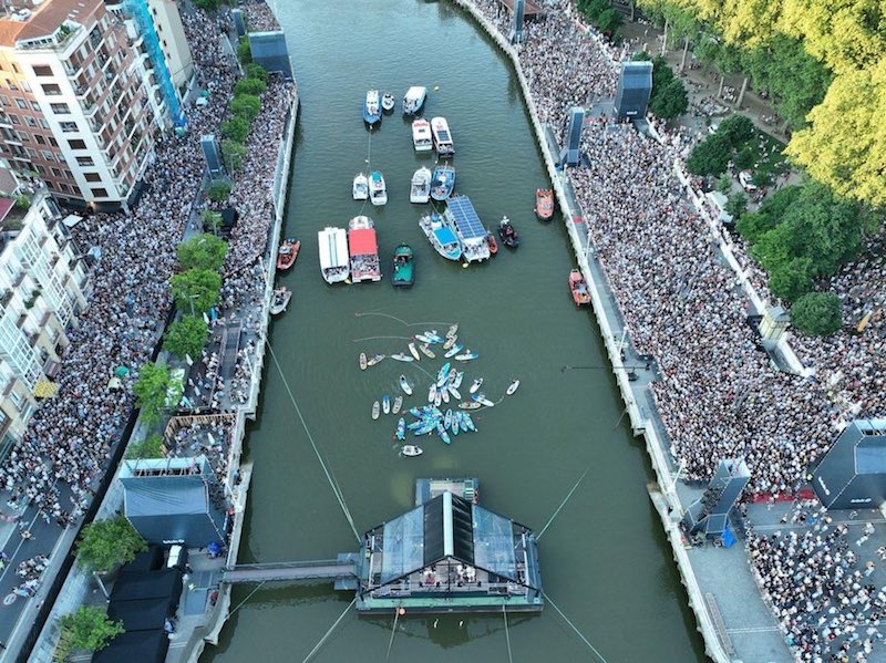 'Arde Bogotá' ha sonado más de lo esperado en Bilbao, donde participó en un concierto, junto a Iñigo Etxezarreta, cantante de 'ETS', y Amaia Romero, ganadora de 'Operación Triunfo 2017', estando el escenario en mitad de la ría de Nervió y siendo miles los espectadores, como se observa en la foto adjunta.