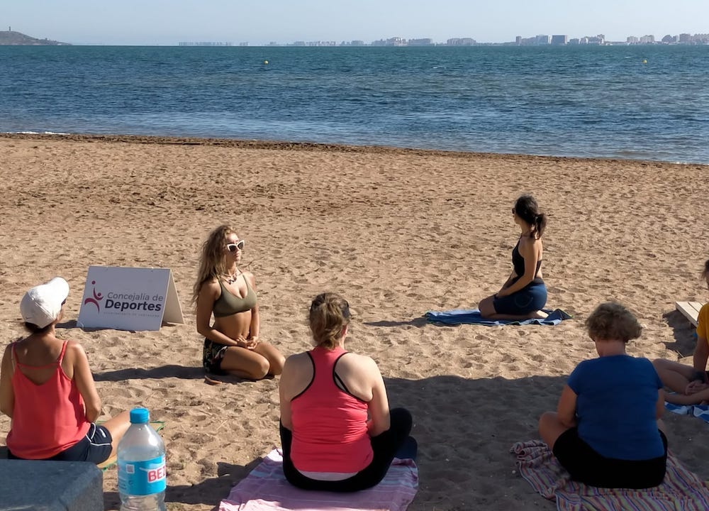 La concejalía de Deportes del Ayuntamiento de Cartagena ha programado numerosas actividades deportivas este verano en diferentes puntos del litoral, como zumba, pilates, gimnasia, aquagym y yoga, siendo esta última disciplina a la que corresponden las imágenes adjuntas con un grupo de usuarias bajo la dirección de Estefanía Fuentes en la localidad marmenorense.