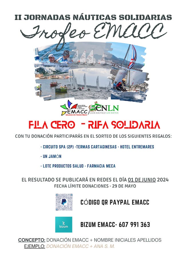 La segunda edición de las jornadas náuticas solidarias tendrá lugar sábado y domingo con competiciones en vela ligera y remo en aguas del Mar Menor.