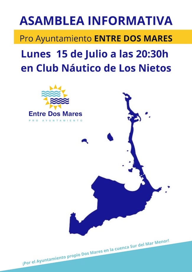 La plataforma 'Entre Dos Mares Pro-Ayuntamiento' estará hoy, a partir de las 20.30 horas, en el Club Náutico de Los Nietos para explicar el proceso que está llevando a cabo para crear un municipio propio desde esta localidad y hasta La Manga.