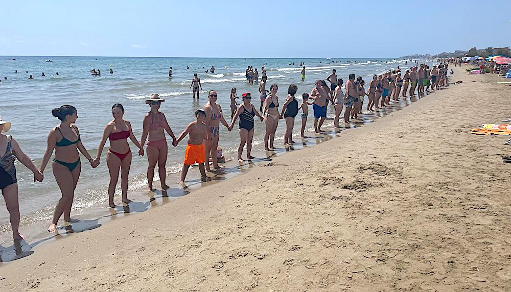 Más de un mil personas forman una cadena humana en las playas contra la Ley de Costas
