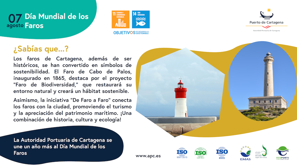 La Autoridad Portuaria de Cartagena reafirma una vez más su compromiso con la conservación y promoción de su valioso patrimonio marítimo, celebrando el Día Mundial de los Faros destacando la importancia de dos proyectos que nos ayudan areflexionar sobre el impacto duradero de estos símbolos históricos y su papel en la seguridad marítima, además de promover el turismo y también la recuperación su patrimonio natural.