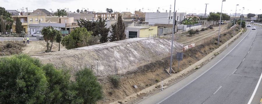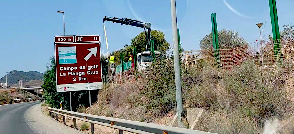 Los vecinos cuyas viviendas están más próximas al trazado de la vía rápida de La Manga verán reducido el sonido del paso de vehículos gracias a un sistema de protección acústica que se está instalando que incluye paneles antirruido, terraplenes y revegetación.